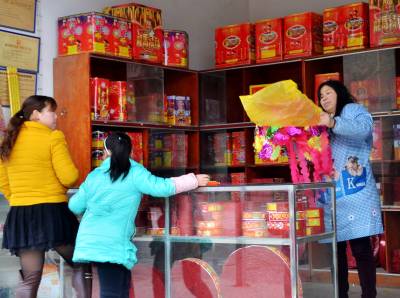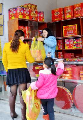 3月2日,恩施市舞阳坝街道办事处核桃坝村,顾客在商店前选购祭祀用品。
