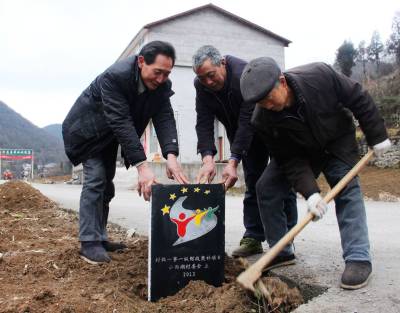 3月1日,建始县花坪镇小西湖村的村民正忙着在该村一组树立2013年度村级“一事一议”财政奖补项目标识牌,这是建始县为每个村级公益事业“一事一议”财政奖补项目颁放的“身份证”。