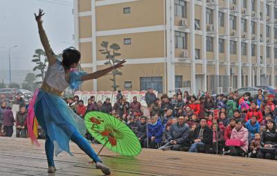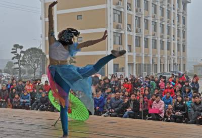 文化大篷车穿山乡 3月3日,湖北省宜都市歌舞剧团的演员在为农村的群众表演文艺节目。当天,该剧团的送戏下乡大篷车来到陆城街道办事处中笔村,为村民表演了十多个人民群众喜闻乐见的文艺节目,受到村民欢迎。据悉,该剧团长年开展送戏下乡活动,每年精心排练一批弘扬社会主义核心价值观,鼓舞人民群众积极向上的文艺节目送到全市123个村和社区,仅春节过后,他们就送戏下乡十多场。 湖北省宜都市委宣传部:曹礼达摄 电话:13872539969 邮编:443300