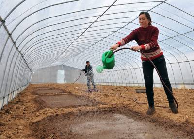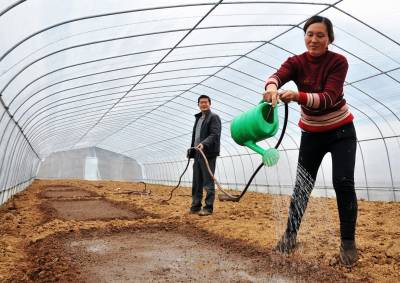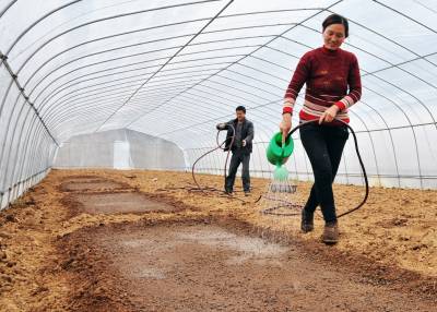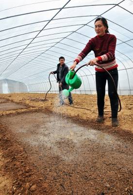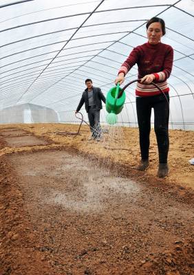3日,徐光福、郭绪会夫妇在浇水,准备施肥、打药后育番茄苗。 徐光福、郭绪会是巴东县官渡口镇西溪坝村一组农民,去年栽种5亩番茄和辣椒,收入8万多元。今年,尝到致富甜头的夫妻俩年前就整好了地、建起了钢架大棚、备足了春耕物资。正月一过,气温上升,他们迅速投入生产。目前,全县20万亩蔬菜已育苗结束,预计半月之后可移栽到大田。(本报视界网 梁勇 摄)13986846069