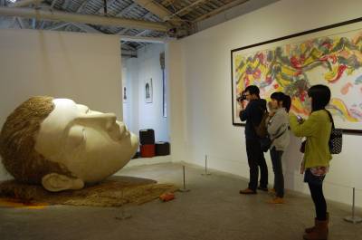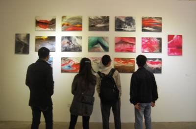 2014年3月2日,广东省广州市,众多观众在天河临珠江的红专厂艺术区香港当代美术馆观看从“次方水墨”上溯到“画诗主义”——赵红尘巡展“水墨的新世界”。赵红尘, 1991年毕业于上海复旦大学中文系作家班。1986年8月开始写诗,被誉为“中国新诗百年罕见的少数几个杰出诗人之一”。此次展览展出诗人艺术家赵红尘从2007年至2013年的阶段性代表性水墨作品9幅、一尊雕塑和一件装置,涉及艺术家从“画诗主义”到“次方水墨”的艺术实践。据悉,“水墨的新世界——从次方水墨上溯到画诗主义”持续展览到5月22日,然后移师到香港巡展。