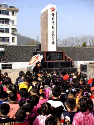 4月2日,竹山县直幼儿园组织300多名学龄前儿童来到竹山县政府后院许明清烈士墓园,缅怀这位新中国成立前为竹山解放献出年仅28岁生命的革命先烈,为英烈献花,讲英烈生前故事,表达对先烈的崇高敬意。据该县城关镇许明清陵墓和宝丰镇施洋烈士纪念馆工作人员透露:”3月下旬以来,全县共有1.2万人前来为许明清烈士和施洋大律师扫墓和献花,表达对先烈无限的敬仰和缅怀之情。不少群众先拜先烈,再回老家祭祖。”(通讯员石濡华摄)竹山县国土资源局石濡华邮编442200电话号码13797858497