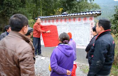 3月4日,恩施市三岔乡茴坝村71岁的原民办教师苗立海在自办的墙报前给乡亲们宣讲社会主义核心价 值观的内容。 家庭条件较好、热心的苗立海退休后被推选为当地的中心户长。当选后他自费2000多元建起了一个水 泥墙报栏,一年办四期墙报。今年第一期的主要内容便是党的群众路线教育,第二期他计划对社会主义核 心价值观进行详细宣传。
