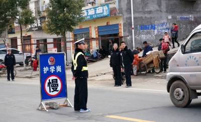 (通讯员 许光泽)3月4日下午5时许,一块“护学岗”警示牌矗立在316国道丁家营镇金色童年幼儿园外的路段,一名身穿执勤马甲的民警站在“护学岗”前的路中央指挥着来往的车辆,多名民警在人流中疏导行人。来往飞奔的车辆或缓缓慢行,或停车等待。一群群妇女、老人手牵幼儿在路旁从容行走,或穿越公路(如图)。