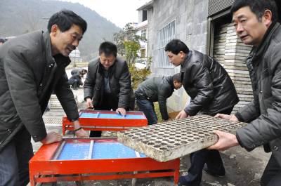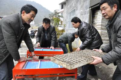 科技抗寒保春种 3月5日,在恩施市红土乡大岩村纸棚沟组,技术员正在帮助烟叶种植大户“抢”育苗。 连日来,该乡在开展群众路线教育活动中,结合实际,抓住当前烟叶育苗最佳季节,面对持续低温天气,采取增温补光、浮盘堆积增温催芽等措施。织乡村干部、技术员100多人,分片到户指导育苗专业户整畦平厢、苗盘消毒、基质装填、播种等漂湿育苗技术,月10日前播种结束。确保烟苗抗寒保春种。 目前,全乡建育苗大棚399座,为1.51万亩烟叶提供优质无病害的幼苗。(本报视界网彭绍峰张清凡摄)