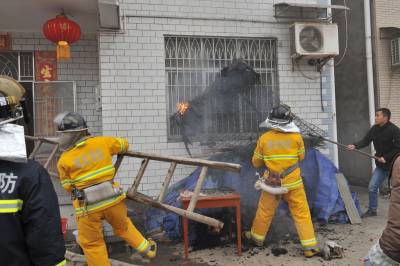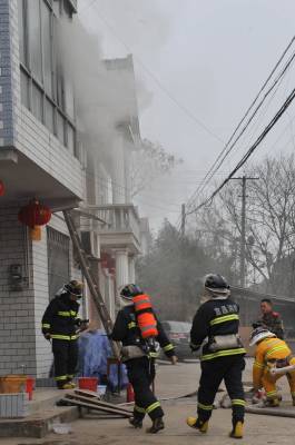 宜都消防十分钟扑灭一起火灾 3月5日,湖北省宜都市消防中队的官兵在参与救火。当天11时许,宜都市消防中队的三台救火车正在陆城街头开展消防演练,11时零8分,该中队接到姚家店镇过路滩村一农家失火的报警。接警后,该中队消防车迅速出动,仅用3分钟时间赶到现场,于11时23分就将大火扑灭。从接警到将大火扑灭仅用了十余分钟时间。 湖北省宜都市委宣传部:曹礼达摄 电话:13872539969