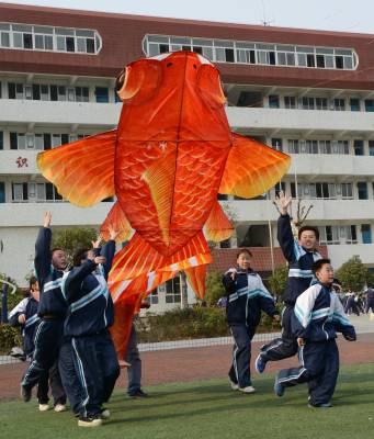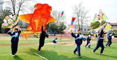 > 武汉市七十一中师生阳春三月同放风筝