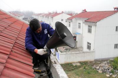5日下午,天门市白茅湖棉花原种场赵岗大队移民新村正在安装无线广播。今年,该市启动农村广播“村村响”工程,计划在400个村安装“小喇叭”,作为连接群众的“传声筒”。目前,已有黄潭、皂市等乡镇实现广播“村村通”,其余各乡镇安装工作也已全面展开。(视界网付磊磊摄)