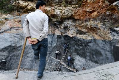 采访中,朱永双柱着拐杖带着我们参观猪场,清理栏圈,给患病的猪打针,又带我们参观他正在新建的水池,跟随在他的背后,沿着陡峭的山路上行,我看到的是由一根拐杖和一条腿支撑起的一个大写人生。