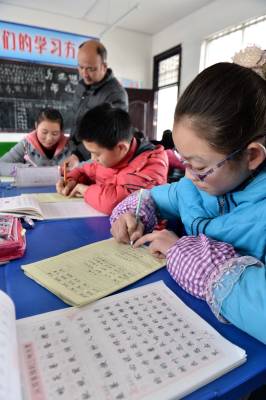 3月6日,保康县马良镇中心学校学生在午间练习硬笔书法。 今年春季开学以来,保康县马良镇中心学校坚持每天开展“晨诵午练暮省”教育方式,即:清晨读国学经典,午间练习名家名帖,晚上反省所失所得,为学生营造学校的书香氛围,繁荣校园文化,丰富人文素养,让传统美德和良好习惯植根于学生的心灵。(本报视界网 杨韬摄)