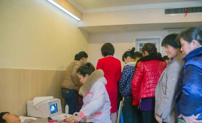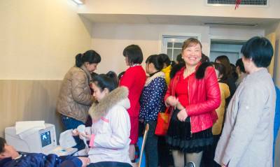 6日,梦珠大酒店的女员工笑容满面地排队等候体检。当日,云梦县工商联联合当地人口计生局启动“情系民企女工、关爱身心健康”活动。他们针对民营企业女工长期工作在一线,体能消耗和精神压力大,缺乏相应保健知识,容易诱发各类妇科疾病的现象,组织医务人员深入当地女工比较集中的民企,免费为她们提供各种妇科疾病检查和健康知识咨询,以便早发现、早诊断、早治疗,提高女工们的自我保健意识,为女工们送上一份特殊的“三八”节日礼物。 (本报视界网 王云清 金文华 摄)