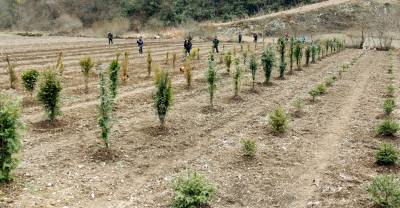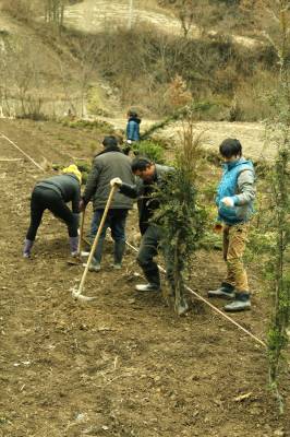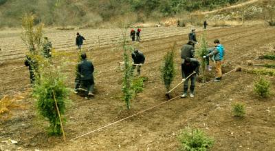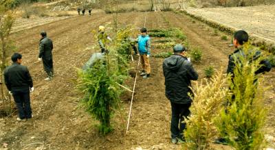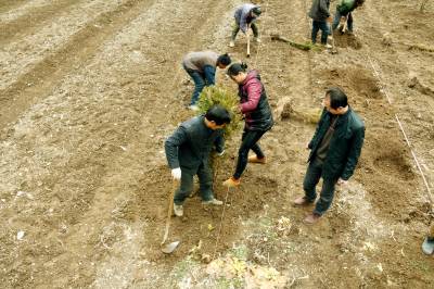十八里长峡自然保护区管理局计划今年投资500万元建设珍稀植物园100亩,现已完成征地、翻地、苗床整理和部分栽植工作。图为正在栽植一级保护植物红豆杉的场景。(视界网 段昌林)