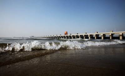 春风拂面映汉江 7日,座落于汉江天门市多宝镇段的南水北调中线兴隆水利枢纽工程在春风拂过江面时荡起层层波浪,与 大坝形成了一道美丽的风景线。它的兴建成为了我市一处秀美的旅游景点。(本报视界网肖金舫刘银斌摄)
