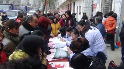 3月6日,为践行党的群众路线教育实践活动,汉川市仙女山街道办事处计生办、办事处社区卫生服务中心(仙女山卫生院)在仙女山社区举行“迎三八,送健康”活动。免费进行查血糖、血压、B超,送叶酸等服务。此次活动不分男女、不限年龄,均可享受免费检查,活动当天。共有500多人参加。 签约摄影师 邹开建 摄 通联:汉川市计生局 电话:13197382491