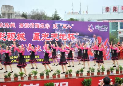 5日,由崇阳县妇联主办的“践行群众路线,展示巾帼风采”庆“三八”广场舞比赛在大集广场举行。来自全县各乡镇、县直及社会组织共16支队伍一一登台比拼,优美的舞蹈伴着有节奏的鼓点,给在场的市民奉上了一场视觉盛宴。 签约摄影师 夏正锋 摄