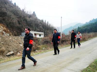 针对开春后,村里绝大部分村民倾巢而出外出打工,而少数人家里只剩下房屋、家具和老幼病残的情况,郧县五峰乡各村纷纷组织民兵在村内巡逻,确保居民和财产安全,不受任何损失。图为3月6日大石沟村民兵巡逻队在该村3组巡逻。(本报视界网周宗华摄) 作者地址:郧县五峰乡政府