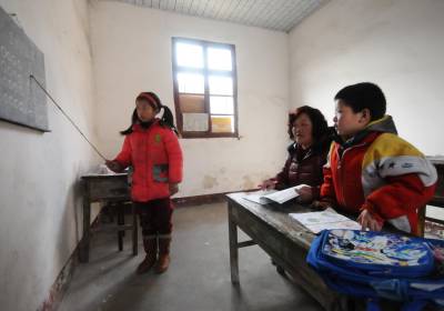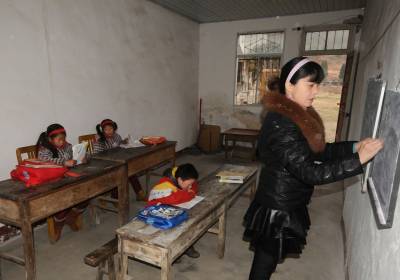 三个学生,两位老师,一所学校五个师生。从2013年9月1日天起付敏玲、付绍琼两位老师就本着“为了三个穷孩子能够识字,为了在他们幼小的心灵里撑起一片阳光灿烂的蓝天”干起了老师、保姆、炊事员的行当。