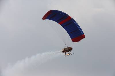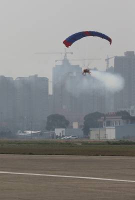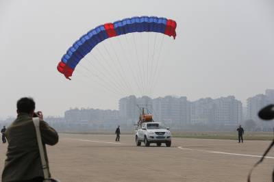 2014年3月8日,由中航工业航宇和湖北省人工影响天气办公室联合主办的“柔翼无人机在人工影响天气中的应用”研讨会现场演试,试验在湖北某机场成功完成。设计中的柔翼无人机未来可携带最大500kg催化剂,在高度400m以下执行空中播撒消雾任务。且操作简便,无复杂起降要求,特别适用于机场、港口等地区。与目前消雾作业常用的固定翼飞机相比,采购成本和维护成本仅是后者的1/5至1/3,使用成本是其1/10。来自国内的20位相关专家现场观摩了试验,并给予高度评价,为该无人机投入实际应用奠定了良好基础。