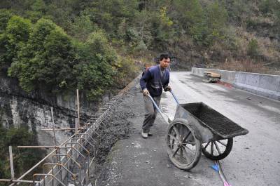 护栏改造聚民心 3月8日,在恩施市红土乡红高(红土至建始高燎)公路上,施工人员正在忙碌着加固干沟桥大桥护栏。 干沟桥大桥是连接红高公路的控制性桥梁,建造时采用石料作护栏,年久护栏损毁严重,失去了安保作用。 今年以来,该乡把实施农村道路安保工程作十大民生工程来抓,筹措资金,招聘专业施工队安装钢筋混凝土防撞墙20公里,确保乡村道路安全畅通,受到社会好评。(本报视界网彭绍峰摄)