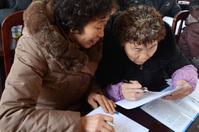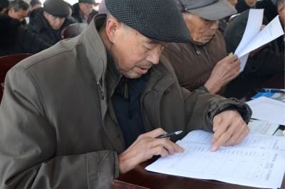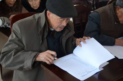 3月8日,恩施市舞阳坝街道办事处核桃坝村村民代表在为村支两委提意见。