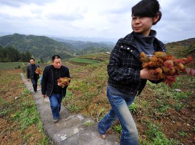 3日,一队人在徐勋培去年刚建成的280亩红香椿基地上采摘红香椿。目前他已在宣恩县建成以红香椿为主、兼营生态休闲的”森林蔬菜”基地3500余亩。”森林蔬菜”亦称山野菜、长寿菜,是目前风行世界的五类健康食品之一,在日本、西欧和东南亚等国被称为”天然野味”,”健康食品”,因其生长在自然状态下,是难得的绿色食品,具有广阔的市场前景,种植”森林蔬菜”是增加山区农民收入的又一途径。(视界网签约摄影师:宋文摄)