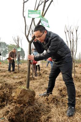 去年6月中旬,农民工刘盛均在务工时不幸发生意外,全身96%的皮肤被重度烧伤。得知消息,他的两个儿子刘培、刘洋争相割皮救父。7月22日,趁弟弟刘洋上班时,哥哥刘培偷偷签下手术合同,抢先将身上10%的表皮移植给了父亲;8月10日,当父亲再次需要进行移植手术时,弟弟刘洋抢先签下了手术合同。兄弟2人的孝心感动了社会,被称为“中国好兄弟”。他们就是同为“80后”的海天教育武汉分校职工刘培和武昌机务段火车司机刘洋。3.8.:来自武汉三镇的50名自愿者一起来到武汉张毕湖公园,一起挖坑栽下了50株树。全国道德模范:割皮救父的“中国好兄弟”刘培/刘洋也一起参与了义务植树活动,并写下了心愿。
