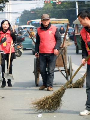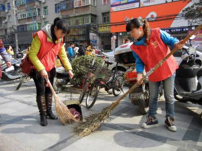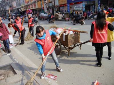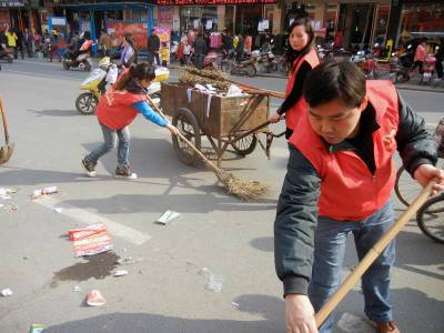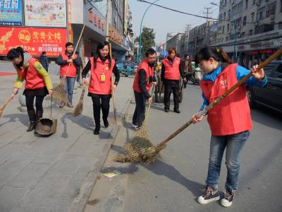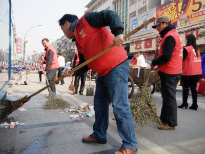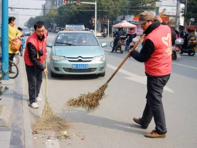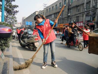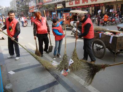 3月9日下午,义工们在人流较多的建设路替换环卫工人扫大街。环卫工人被称为“马路天使”、“城市美容师”,他们一年365天都在城市的大街小巷来回奔波,但休息一天却成为他们难得的奢望。当日,云梦县义工联的义工们开展“今天我是环卫工”的活动,带动义工及社会爱心人士进一步关注弱势群体,培养吃苦耐劳精神和社会实践能力。 王云清 摄