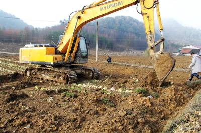 宣恩椿木营乡抢时整治农田 3月9日,宣恩县椿木营乡甘竹坪村10几台挖机正在农田里忙得热火朝天。 为了不误春耕农时,该乡目前已组织近百台挖机对土地治理的村进行抢时整治。 预计到4月中旬全乡将有1万多亩农田可治理完毕。 (本报视界网:罗清峰摄)