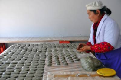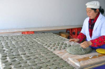10日,鹤峰县容美镇龙井材二组张成美正在加工水雀草粑粑。她家每年自家采摘和给单位人和村民加工水雀草粑粑上万斤,收入过达二万元。 吃水雀草粑粑是鹤峰土家族的习俗,每年从雨水到清明季节,鹤峰单位人和农村人都要到山坡一采摘水雀草,添加百分之六十的糯米,擂烂后做成粑粑,成了土家族人最喜爱吃的无公害食品,同时销往全国各地,颇受青睐。(本报视界网何吉安)