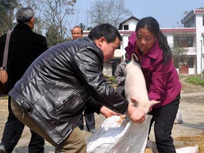 来凤:扶贫送猪崽 3月10日,来凤县革勒车镇扶贫开发办在桑树坪村为村民送猪崽。该村是来凤县整村扶贫推进村。按照来凤“1234”养殖模式要求,力争今年实现扶持养猪户100户、户平养猪3头、平均增收达4000元的目标,尽快实现整村脱贫。 本报视界网 姚丙然、向平海 来凤县革勒车镇文化服务中心 电话:13997799385