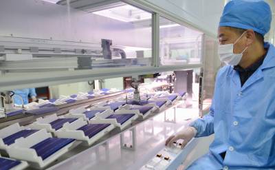 3月10日,建始县永恒光电科技公司工人正在全自动太阳能电池片生产车间忙着生产自主研发的双模电池片。近两年来,该公司年高薪聘请技术主管,组建研发团队,与中国电子科技集团、华中科技大学和湖北民族学院组建科技研发联合体,与国外客户建立科研合作关系,自主研发的主研发且转换率极高的双模电池片技术、太阳能智能电站遥感技术均领跑国内水平,目前,这家山里企业生产的太阳能系列产品远销伊朗、德国等30多个国家和地区,成为湖北省最大光伏产业创汇企业。本报视界网刘通讯员何宗波摄