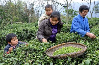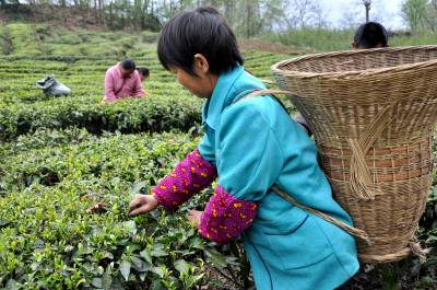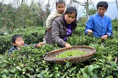 4月3日,恩施市红土乡天落水村,留守妇女正在茶园里忙碌采摘清明茶。据悉,随着大批农村劳动力外出打工,恩施农村的妇女、儿童和老人成为村里的留守者。而妇女们自然承担了繁重的家务和田间的农活。在田间地头、乡村企业,随处可见她们在辛勤耕耘和劳作的身影,还有不少妇女农闲时在乡村就近做些零工,为家庭增加一点收入。她们常年活跃在山乡农村,为家庭的富裕和家乡的富强发挥着不可替代的作用。(视界网签约摄影师彭绍峰)红土乡政府13329820218