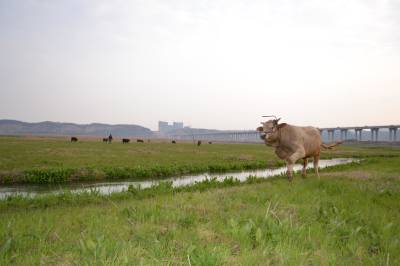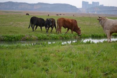 汉江春牛图 (通讯员 杨显有)10日,几头牛儿正在绿草如茵的郧县汉江桥下裸露的河床上吃草、打欢。由于郧县汉江长时间的枯水,大片长期裸露在外的河床,在春姑娘的播种下,长满了如茵的绿草,牛儿们在上面吃草、嬉戏,平添了一道春天的美画卷。 (供稿:湖北省郧县柳陂镇中心小学 18163190517 442532)