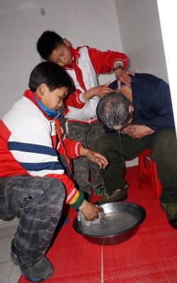 (通讯员 许光泽)风和日丽,春意荡漾。10日下午,丹江口市丁家营镇小学四、五年级共60多名学生来到镇敬老院,孩子们扫房间,拖地板,擦栏杆,整床铺,部分学生在敬老院工作人员的指导下为不能生活自理的老人洗头,帮老人梳头,陪老人聊天。孩子们身体力行开展学雷锋活动,让老人体会到来自社会的温暖和关爱。