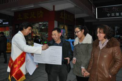 政策法规志愿宣传队活跃城乡(图) 【通讯员 唐煌后】近日,湖北省恩施市的街头巷尾,农家小院活跃着一支城乡法制宣传志愿者队伍。他们由退休干部职工自愿组成。志愿者们通过发放宣传资料、解答群众疑问、演出法制文艺节目等形式,向城乡居民宣讲法律法规及现行政策,受到群众好评。 2月中旬以来,志愿者足迹遍布恩施市城郊“三办”(街道办事处)“一镇”(镇政府)的十多个村组(社区)的大街小巷,为城乡居民送去法制文艺演出四场次、发放宣传资料五千多份,受教育人数超万人。
