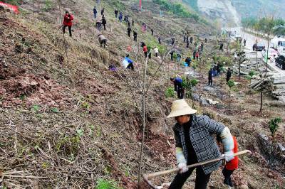 义务植树添新绿 3月11日上午,宣恩县林业局组织县四大家领导及县直机关单位干部职工开展义务植树绿化城市活动。 据悉:活动当天,该县除县直机关近300名干部职工在贡水河南岸义务植栽桃树、樟树、樱花、栾树等园林绿化树苗3000多棵外,全县其它9个乡镇在植树基地同时开展义务植树活动。 (本报视界网:罗清峰、唐世红摄)