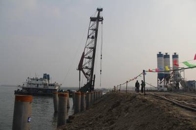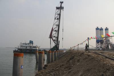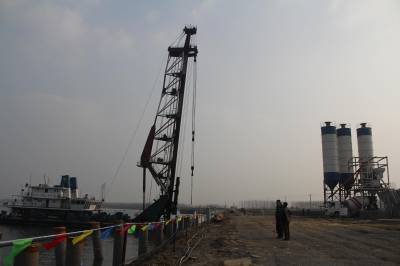 沙洋县4.58亿元打造“荆沙汉”千吨级航运圈 昨日,沙洋港中心港区一期综合码头项目正在进行桩基础施工。据了解,沙洋港中心港区一期综合码头工程是湖北省“十二五”重点港口建设项目,是“荆州—沙洋—武汉”千吨级航运圈建设的枢纽港口。该项目总投资4.58亿元,规划新建6个1000吨级泊位,年设计吞吐量490万吨。本报视界网何长青 摄 通联:沙洋县新闻中心何长青13972901616邮编:448200