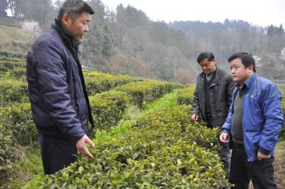 茶园“救灾” 3月11日,在恩施市红土乡乌鸦坝村有机茶园里,“土专家”正在田头察看春茶发芽生产情况。 由于前段时间的低温雨雪天气,当地有机春茶比去年推迟半个月时间开采。该乡“土专家”们会商后根据茶树受冻情况有所不同,提出具体修剪、肥水管理等措施,帮助茶叶产区茶农“救灾”,提升“迟到”的春茶鲜叶质量,促进农民增产增收。(本报视界网彭绍峰阮正斌摄)