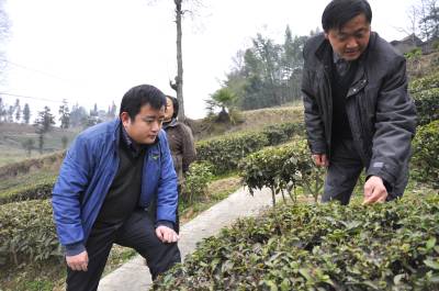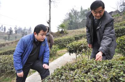 > 茶园“救灾”(彭绍峰摄)
