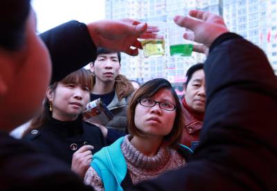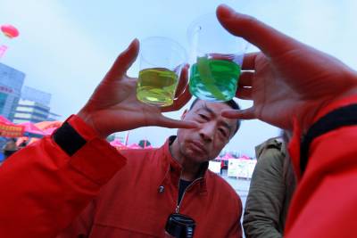 3月11日,在孝感市人民广场,一名工作人员现场演示如何检测饮用水、矿泉水的酸碱度,引起市民兴趣。当日,孝感市“3•15”国际消费者权益日主题宣传活动在广场举行,共计近50家市直和企事业单位参加现场咨询宣传活动,如何识别假烟、假酒、假药等与群众生活息息相关的信息倍受市民关注。 签约摄影师 晏美华 摄