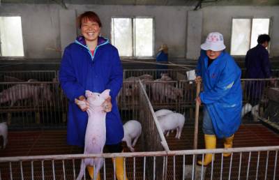 3月5日,云梦县义堂镇养殖女能人高玉凤在她的“育猪舍”里,一头综红色的头发透着几分时髦。她和丈夫魏国民从1996年养10多头猪起家,如今发展为占地160多亩,年出栏生猪5000头、种猪1000头,年产水产45吨的综合立体循环养殖场。近年来,高玉凤和丈夫一起带领周边村民发展养殖,并成立了39人的黄土坡养猪专业合作社,年出栏生猪一万多头,黄土坡村为此成为义堂镇养猪“状元村”。 签约摄影师 晏美华 摄