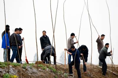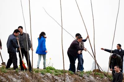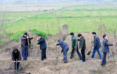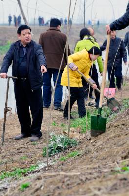 3月11日,云梦县新一轮“三万”工作队员同所住镇村干部一起在下辛店镇老江村余马湖二级渠栽种意杨苗。连日来,当地“三万”办在全县12个乡镇先后组织开展了全民义务植树活动,参加人员达2000余人,植树1.9万余株。今年,该县义务植树活动改以往由林业部门一家单位组织实施为县绿委办、“三万办”统筹安排、各乡镇具体组织实施的义务植树模式,变一次植树为多次植树,并落实了后期管护人员和管护责任。 (王云清 何贵平 摄)