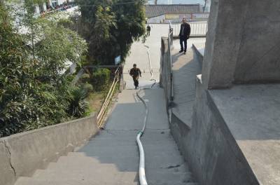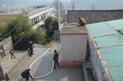 近日,县自来水公司因检修潘口乡路段管道,潘口乡大面积长时间停水。11日清晨,潘口小学备用水塔的水用完而停水,师生吃水告急,严重影响着学校的教育教学秩序和全校800余名师生的正常生活,众师生心急如焚。得知这一消息后,驻竹武警消防中队迅速组织一部消防车义务送水到校为师生排忧解难。经过半个小时奋战,消防官兵克服了该校门前道路坡度陡狭窄而消防车无法驶进校园这一难题,用消防管子将水送到了该校的备用水塔里,解决了全校800余名师生长达4个多小时无水吃的难题。武警官兵们践行了人民子弟兵为人民服务的宗旨,受到了全体师生的称赞。(视界网 王定生 张帅 摄)(电话15347279289)