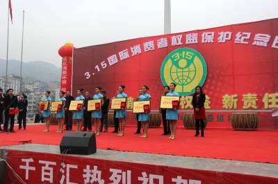 当日,由宣恩县人民政府主办,宣恩县行政管理局、宣恩县消费者协会等单位承办的以“新消法、新权益、新责任”为主题的3.15国际消费者权益保护纪念日活动在县城河滨广场举行。活动现场,来自县工商、质监、物价、卫生等消协理事单位的工作人员还设立咨询台、服务台,解答消费者的咨询,受理消费投诉,展示鉴别假冒劣质商品,向过往群众发放消费维权法律法规宣传材料,面对面为消费者服务,宣传自身维护消费者权益的举措等。与此同时,对消费者满意单位还进行了表彰。当日,县工商局、县质监局、县食药监局还对被查缴的2120公斤的假冒伪劣食品、药品及茶叶包装进行集中销毁。共摆放宣传图版38块,发放维权宣传手册2000余本、资料5000余份,现场受理消费者投诉185件。