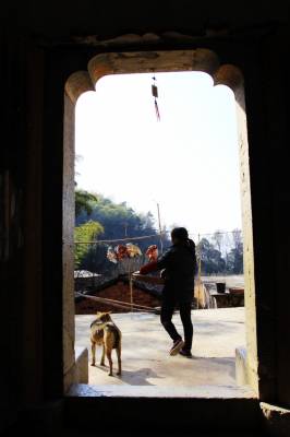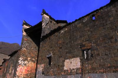 落日熔金映古宅