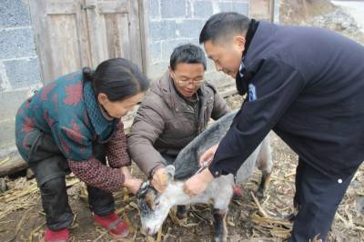 又是一年春防时(图) 3月12日,巴东县绿葱坡镇畜牧兽医中心防疫员正在给山羊注射疫苗。随着春季气候逐步转暖,连日来,巴东县各级畜牧兽医部门组织防疫人员,按照“村不漏组、组不漏户、户不漏畜、畜不漏针”要求,走村入户上门开展动物疫病防控。(谭平 朱远林 摄)