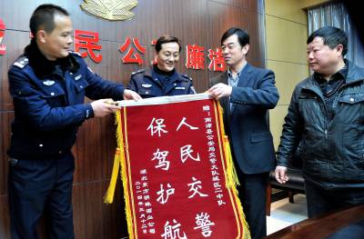 21014年3月12日,湖北东方明珠酒业公司将一面“人民交警,保驾护航”的旌旗送到南漳县公安局交警大队。去冬今春,是湖北东方明珠酒业公司整体搬迁的时期。由于大型的储藏罐的运输难度大,南漳县交警大队为了确保企业在运输中安全,抽调交警全天候的服务,使企业安全、顺利的迁移。