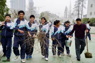 3月12日,是全国的植树节。武汉市第七十一中学初三的同学们,抓紧在离6月20日中考前的一百天时间,放松心情,调整心态,用栽树的方式,为自己即将来临的中考减压,为母校增绿,做永恒的留念。