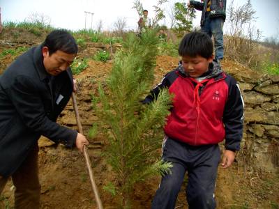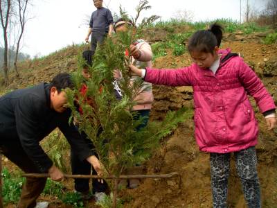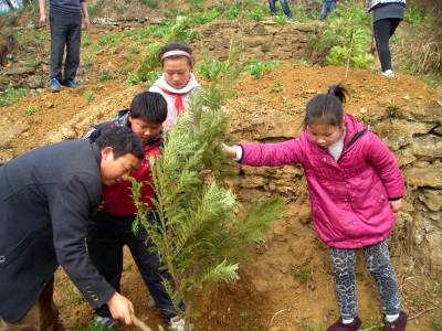 我和叔叔来植树 3月13日,竹山县潘口乡组织乡直机关200余名职工到乡政府后山上参加义务植树活动。当日,潘口小学组织部分学生和教师参与活动,用实际行动诠释植树造林、保护环境的理念。同学们种下了一棵棵树苗,也在心中播种了一片绿的希望。(本报视界网 王定生 摄)(电话15347279289)