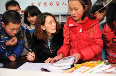 农家书屋成山村学生第二课堂 3月13日,利川市忠路镇小学生到镇文体服务中心农家书屋借阅图书。当天,该镇启动“放飞梦想,快乐阅读”读书活动。为充分发挥农家书屋作用,该镇创新服务开展全民阅读活动,筹资充实少儿、科普类书籍,藏书达3000余册,并通过延长开放时间、双休日开放、发放图书借阅卡、公布新书信息等形式,吸引学生参与,农家书屋逐渐成为孩子们的第二课堂。图为农家书屋管理员为学生推介、登记新书。(本报视界网 牟联文 袁利 摄)